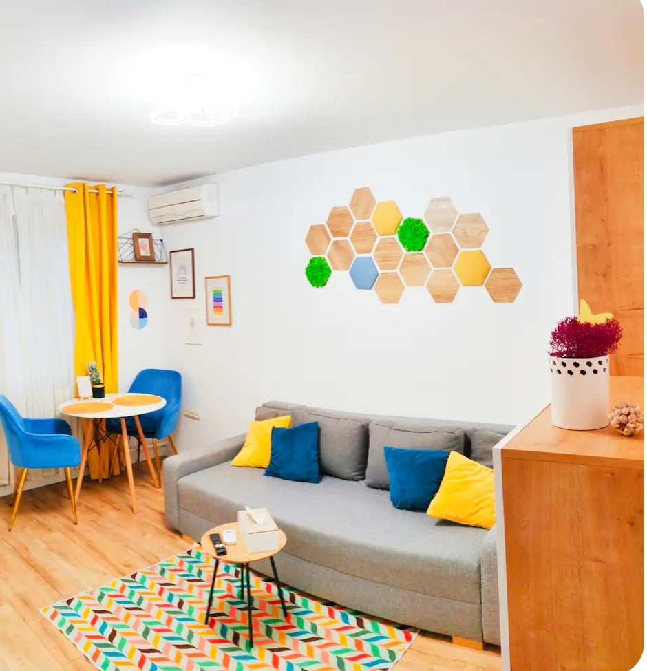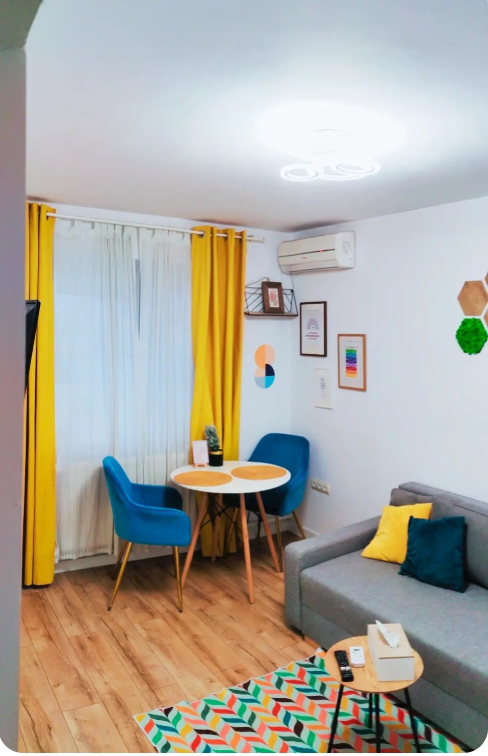 Garsoniera este dotata cu tot ce este necesar pentru o ședere plăcută (mașină de spălat, feon, fier de calcat, cuptor, plita, frigider, etc).